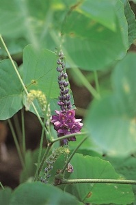 花は赤紫の蝶形花。食用・薬用としての効果もある。