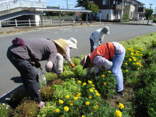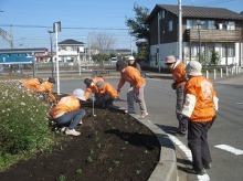 1月10日(水曜日)、武川駅ロータリー花壇の整備をしました。 枯れたガウラの抜根と、新たに草が生えてこないように地表を削る作業を行いました。
