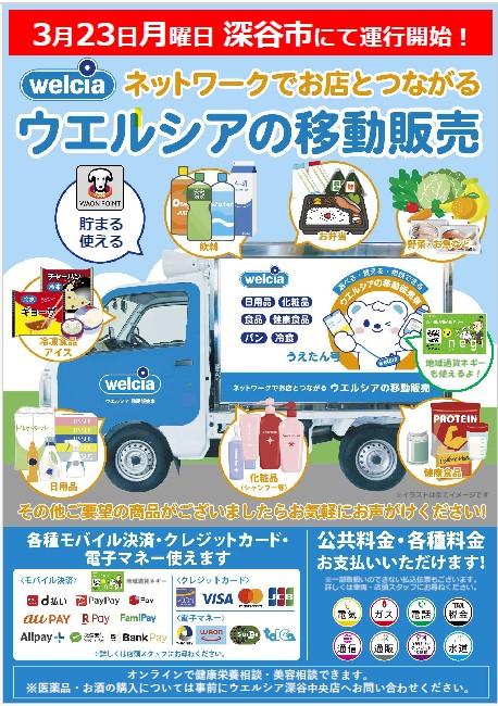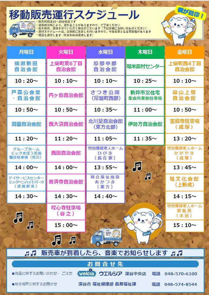 ・交通事情等により、遅延する場合があります。また、台風や積雪などの荒天時は、運休する場合があります。運行の確認は、ウエルシア深谷中央店(電話 048-570-6100)までご連絡ください。